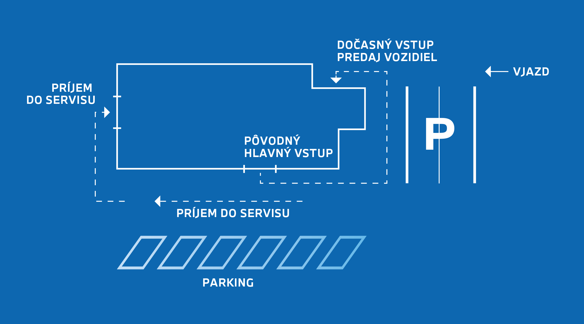 Dočasný vstup do showroomu nájdete viditeľne označený hneď pri príjazde do areálu.